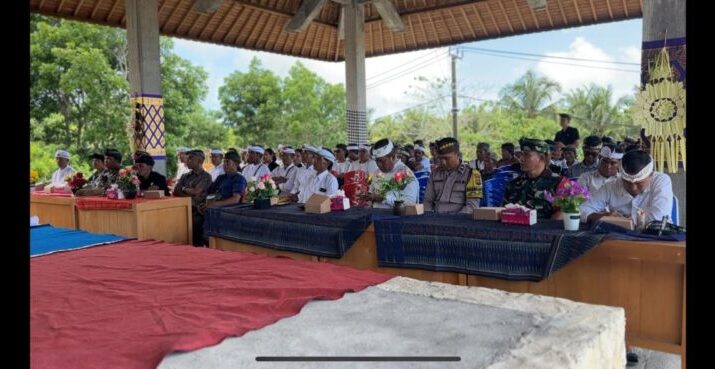 Klungkung,- Sinergitas dan komitmen dalam rangka mendukung kegiatan adat di wilayah binaan kembal ditunjukkan Serka Komang Suwina Babinsa Tanglad Koramil 1610-04/Nusa Penida saat menghadiri