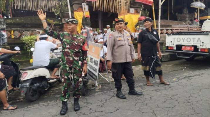 TNI–Polri Bersama Pecalang Jaga Kondusivitas Piodalan di Pura Desa Keramas