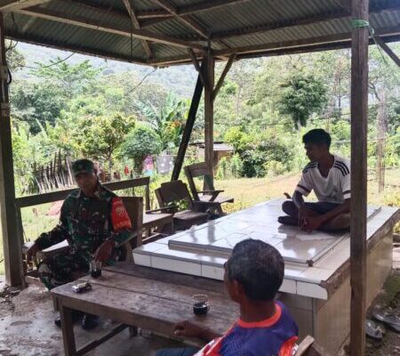 Ende, — Babinsa Koramil 1602-04/Maurole, Sertu Clementino P. Da Silva, melaksanakan kegiatan Pengamanan Wilayah (Pamwil) sekaligus Komunikasi Sosial (Komsos) bersama masyarakat Desa Unggu, Kecamatan
