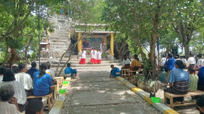 Klungkung,- Terik panas matahari tak sedikitpun menyurutkan semangat dan kebersamaan ratusan warga Dusun Karangsari, Desa Suana , Kecamatan Nusa Penida-Klungkung dalam melaksanakan upacara keagamaan