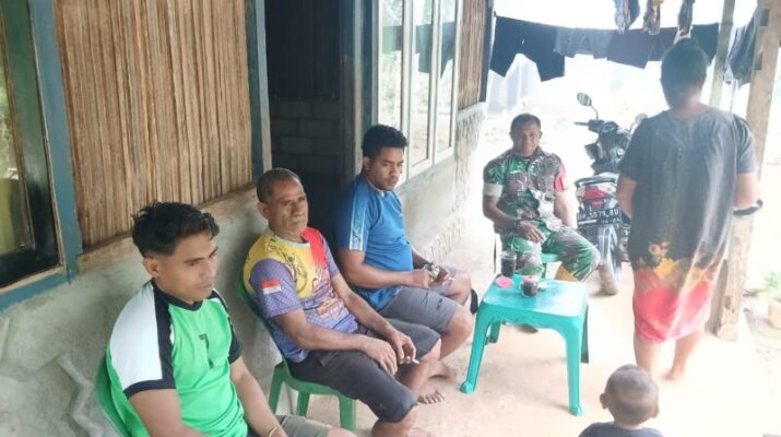 NTT-KUPANG, – Babinsa Oesena Koramil 1604-04/Amarasi, Serda Yornam T. Kase melaksanakan kegiatan Komunikasi Sosial (Komsos) bersama masyarakat Desa Oesena bertempat di rumah Bapak Melkior