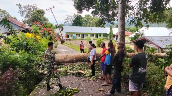 Pratu Oldwin Nabunome Turun Langsung Tangani Laporan Pohon Tumbang di Dusun Bei