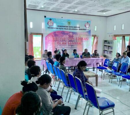 NTT-KUPANG, – Babinsa Kelurahan Bakunase II Koramil 1604-01/Kupang, Peltu Surahman menghadiri kegiatan sosialisasi pemilahan sampah yang diselenggarakan di Aula Kantor Lurah Bakunase II, Kecamatan