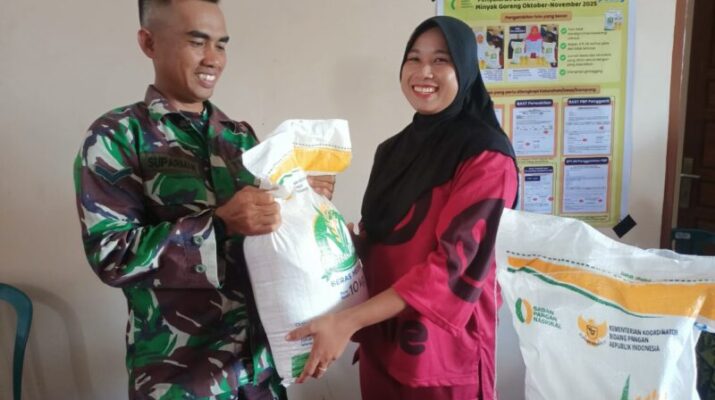 Sumbawa, NTB – Babinsa Desa Lopok Beru, Serda Suparman dari Koramil 1607-06/Lape Lopok, bersama Pemerintah Desa Lopok Beru melaksanakan kegiatan pendampingan penyaluran bantuan pangan