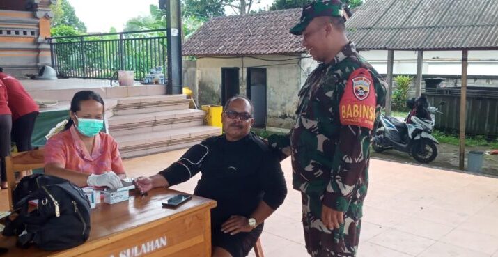 Bangli – Babinsa Desa Sulahan Koptu I Made Sukadana melaksanakan pendampingan pada kegiatan Posyandu Ibu, Balita dan Lansia yang bertempat di Bale Tanggahan Peken,