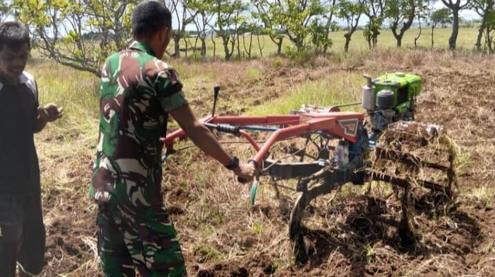 NTT – Sumba Timur. Dalam rangka mendukung ketahanan pangan dan meningkatkan hasil pertanian masyarakat, Babinsa Koramil 03/Pahunga Lodu Kodim 1601/Sumba Timur, Sertu Yohan Saekoko,