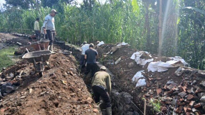 Warga dan Babinsa Desa Lembean Bekerjasama Buat Drainase Lewat Gotong Royong