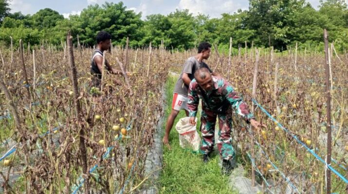 Wujudkan Kesejahteraan Petani, Anggota Satgaster Pos Halibete Bantu Petani Panen Tomat