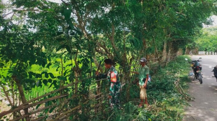 NTT-KUPANG, – Babinsa Naitae Koramil 1604-05/Sulamu, Sertu Jackson Paulus Tuka, melaksanakan kegiatan karya bakti bersama warga Desa Naitae dalam memperbaiki pagar yang rusak. Kegiatan