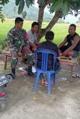 Sumbawa Barat, NTB – Dalam rangka menjaga stabilitas keamanan dan ketertiban wilayah binaan, Babinsa Koramil 1628-01/Taliwang, Serda Adriansyah, melaksanakan kegiatan komunikasi sosial (Komsos) dan