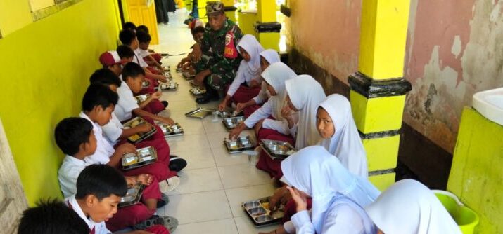 Sumbawa Barat, NTB – Dalam rangka mendukung peningkatan gizi dan kesehatan anak usia sekolah, Babinsa Koramil 1628-03/Seteluk melaksanakan pendampingan Program Makan Bergizi Gratis