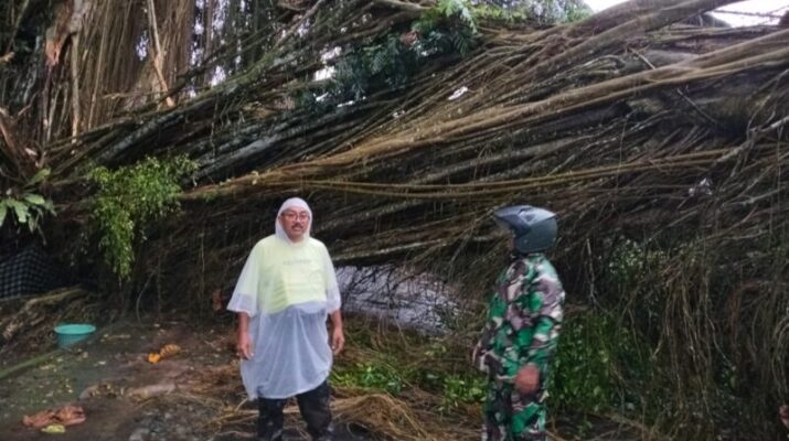 Klungkung,- Pohon jenis beringin yang berlokasi di akses jalan utama Dusun Gunung Rata, Desa Getakan, Kecamatan Banjarangkan, Kabupaten Klungkung tumbang pada Senin ( 15/12/25