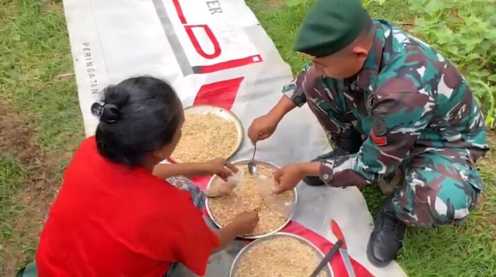 Satgas Pamtas RI–RDTL Sektor Timur Yonarmed 12 Kostrad Pos Turiscain melaksanakan kegiatan pendampingan Usaha Mikro, Kecil, dan Menengah (UMKM) pembuatan tempe kepada masyarakat di