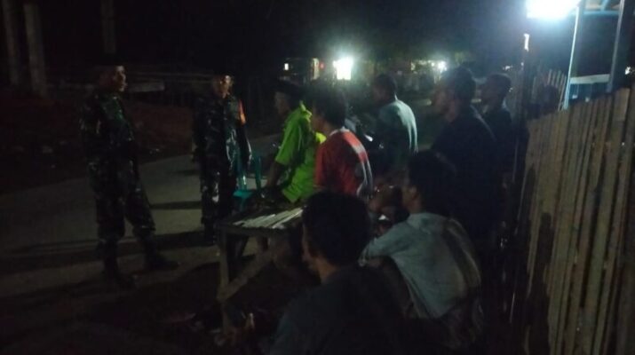 Dompu, NTB – Babinsa Koramil 1614-01/Dompu Kodim 1614/Dompu, Serma Arif Rahman, bersama anggota karang taruna melaksanakan kegiatan ronda malam sekaligus kongkow dengan warga binaan