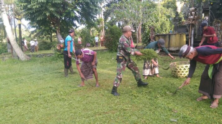 Tqabanan – Babinsa Desa Jegu Koramil 1619-08/Penebel, Serma I Made Duduk, bersama Krama Adat Desa Jegu melaksanakan kegiatan gotong royong (ngayah) berupa mereresik (pembersihan)