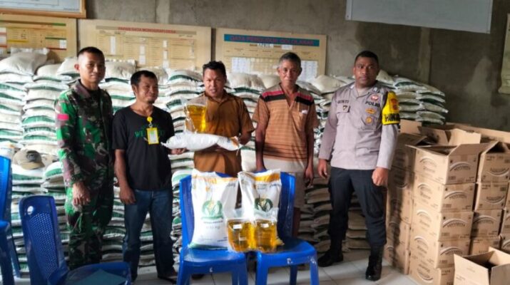 Ruteng – Babinsa Koramil 1612-01/Ruteng, Praka Muh Asroruddin, menghadiri sekaligus melaksanakan pendampingan kegiatan pembagian bantuan pangan kepada masyarakat Desa Golo Lanak, Kecamatan Cibal, pada