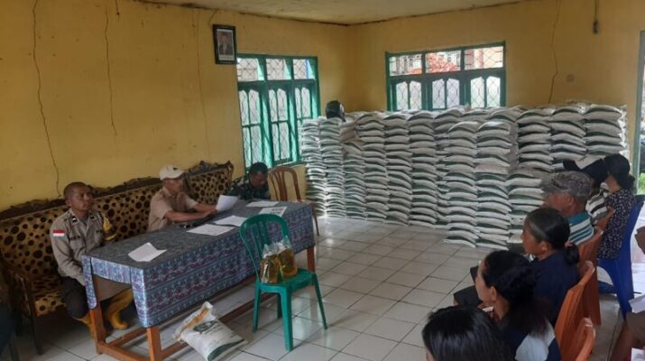 Reok Barat — Babinsa Koramil 1612-02/Reok, Serka Paulus, menghadiri sekaligus mendampingi kegiatan pembagian bantuan pangan bagi warga Desa Watu Baur, yang dilaksanakan pada Senin,