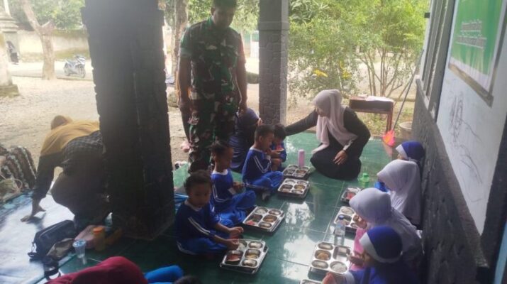 Sumbawa Barat, NTB – Dalam rangka mendukung program peningkatan gizi anak usia dini, Babinsa Koramil 1628-01/Taliwang melaksanakan kegiatan pendampingan Makan Bergizi Gratis (MBG) di