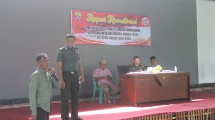 Kota Bima – Kodim 1608/Bima menggelar Rapat Koordinasi Evaluasi Percepatan Pembangunan Gerai Koperasi Desa/Kelurahan Merah Putih (KDKMP).Kegiatan berlangsung di Aula Serbaguna Makodim 1608/Bima, Jalan