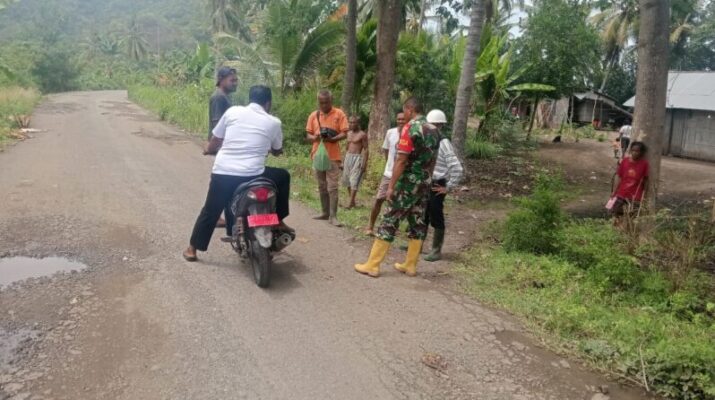 Ende – Babinsa Koramil 1602-04/Maurole, Sertu Denis Fernandes, melaksanakan kegiatan Monitoring Pengamanan Wilayah (Pamwil), Karya Bhakti, dan Komunikasi Sosial (Komsos) bersama masyarakat di Desa