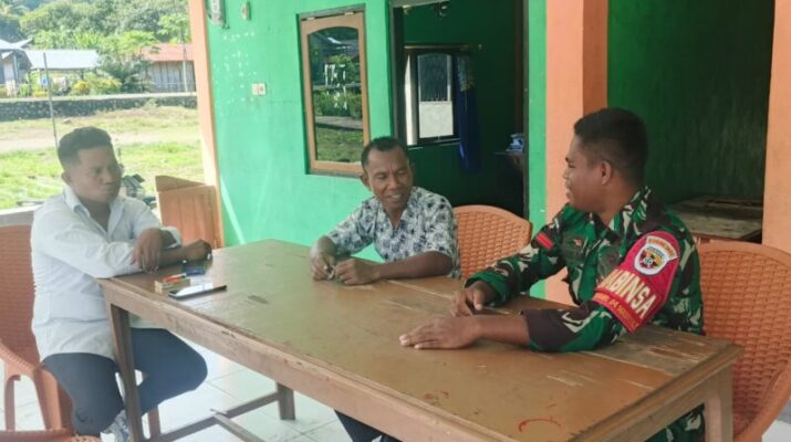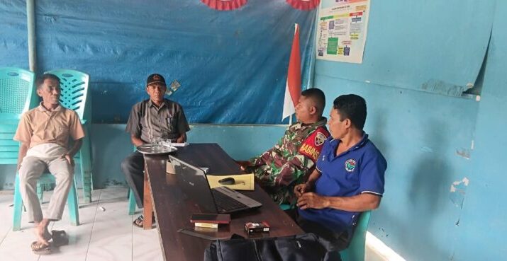 Ende – Babinsa Koramil 1602-02/Wolowaru, Praka Umar, melaksanakan kegiatan Monitoring, Komunikasi Sosial (Komsos), dan Pengamanan Wilayah (Pamwil) di Desa Nuamulu, Kecamatan Wolojita, Kabupaten Ende,