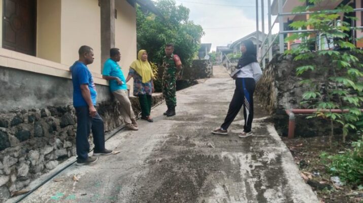 Ende – Babinsa Koramil 1602-04/Maurole, Sertu Denis Fernandes, melaksanakan kegiatan Monitoring Pengamanan Wilayah (Pamwil), Karya Bhakti, dan Komunikasi Sosial (Komsos) bersama masyarakat di Desa