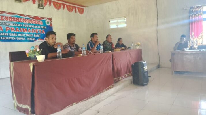 SUMBA TENGAH – Babinsa Koramil 03/Katikutana Kodim 1613/Sumba Barat, Sertu Latif, menghadiri Musyawarah Perencanaan Pembangunan Desa (Musrenbangdes) yang dilaksanakan di Desa Praimadeta, Kecamatan Umbu