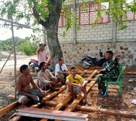 ROTE NDAO – Babinsa Kodim 1627/Rote Ndao melaksanakan kegiatan monitoring wilayah sekaligus pengamanan di kawasan pembangunan Sentra Industri Garam Nasional (K-SIGN) yang berlokasi di