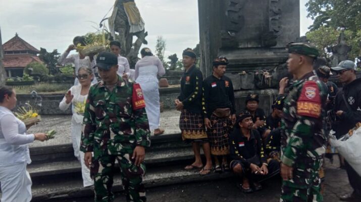 Danramil Klungkung Kerahkan Anggota Turun Amankan Upacara Bhumi Sudha Di Pura Segara Watu Klotok