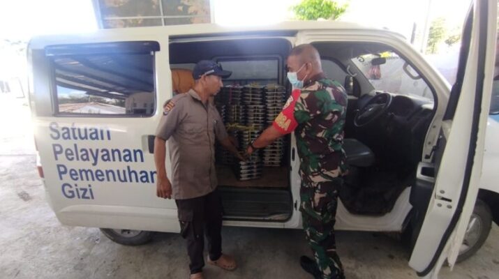 ROTE NDAO – Babinsa Koramil 1627-02/Pantai Baru melaksanakan pendampingan kegiatan pemberian makanan sehat bergizi kepada ribuan pelajar di wilayah Kecamatan Rote Timur, Kabupaten Rote