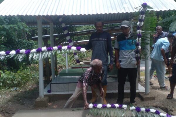 NTT-KUPANG, – Babinsa Oesena Koramil 1604-04/Amarasi, Serda Yornam T. Kase, bersama aparat dusun dan masyarakat melaksanakan gotong royong pengecoran liang lahat almarhum Bapak Nikolas