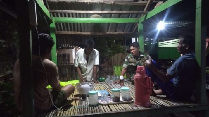 Dompu, NTB – Babinsa Koramil 1614-01/Dompu Kodim 1614/Dompu Desa Bakajaya, Serka Isyra, melaksanakan kegiatan ronda malam sekaligus silaturahmi bersama Karang Taruna dan warga binaan