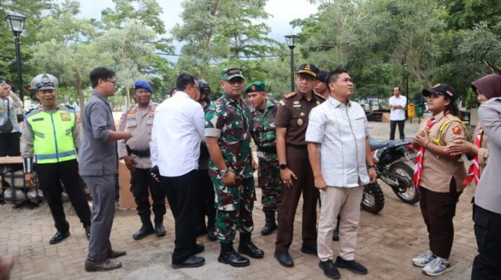 Sumbawa Besar — Dandim 1607/Sumbawa Letkol Kav Basofi Cahyowibowo, S.T. bersama unsur Forum Koordinasi Pimpinan Daerah (Forkopimda) Kabupaten Sumbawa melaksanakan peninjauan langsung ke sejumlah