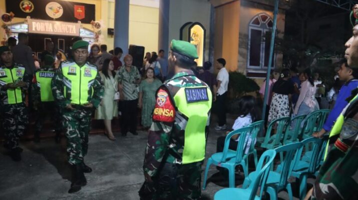 NTT—ALOR—, Babinsa Desa Termate, Koptu Abd Syukur Kasim, bersama Pratu Rahmat Ulumando melaksanakan pengamanan Ibadah Perayaan Natal pada Rabu, 25 Desember 2025, mulai pukul