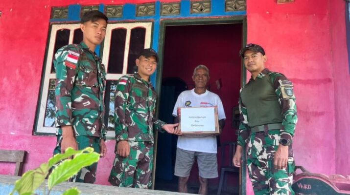 Tasinifu – Satgas Pamtas RI-RDTL Sektor Barat Yonarhanud 2 Kostrad Pos Oelbinose membagikan paket sembako kepada masyarakat binaan dalam rangka menyambut Hari Natal di