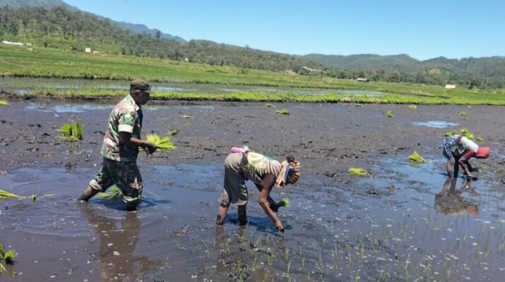 Sinergi TNI dan Petani Warnai Penanaman Padi di Desa Tanglapui