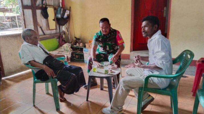Rote Ndao – Babinsa Koramil 1627-03/Batutua, Praka Fandri Lofa, melaksanakan kegiatan komunikasi sosial (komsos) dan monitoring wilayah binaan di Desa Batutua, Kecamatan Rote Barat