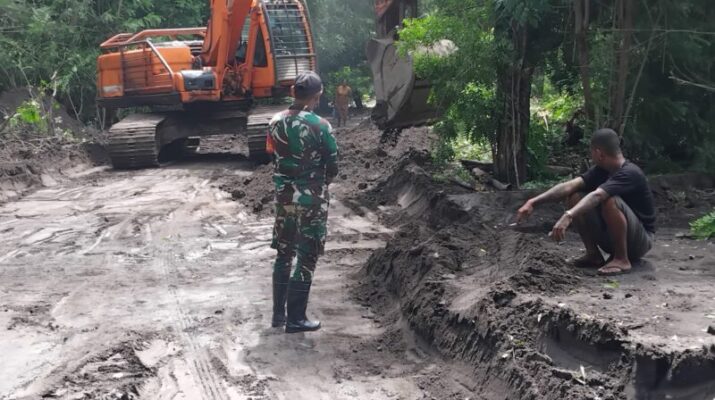 Babinsa Turun Lapangan, Pembersihan Sisa Material Banjir di Jalur Nobo–Nurabelen Dikawal Ketat