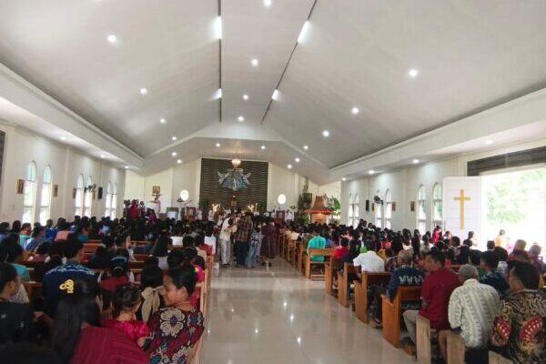 NTT-Sumba Timur.Babinsa Koramil 05/Waingapu Kodim 1601/Sumba Timur, Serka Antonius Kopa Rihi, melaksanakan pengamanan ibadah Natal di Gereja Katolik St. Elisabet Lambanapu, Kecamatan Kambera, Kabupaten