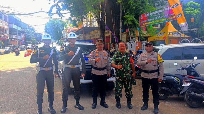 NTT-KUPANG,- Babinsa Peltu Surahman bersama anggota Denpom Kupang dan Polresta Kupang Kota melaksanakan pengamanan Ibadah Natal di Gereja GMIT Koinonia Kupang. Kegiatan pengamanan ini