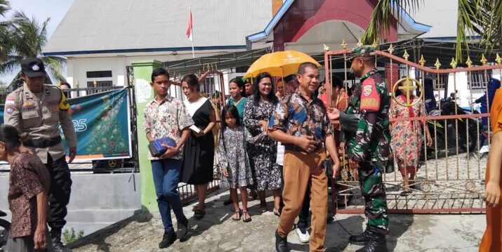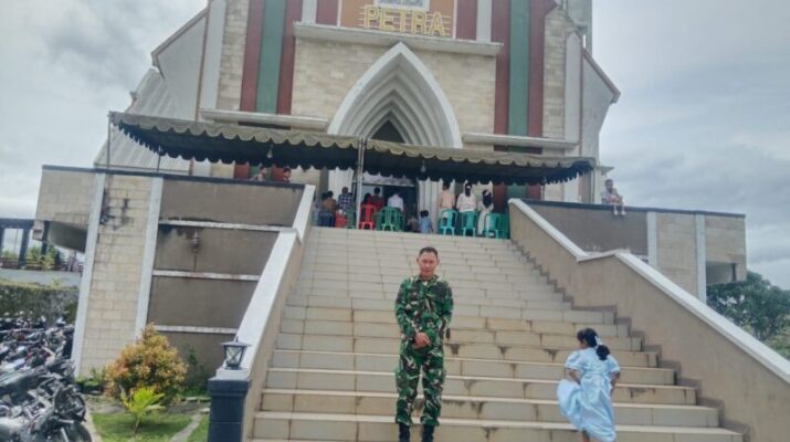 NTT – Sumba Timur. Dalam rangka menjaga keamanan dan ketertiban selama perayaan Hari Raya Natal, personel TNI dari Kodim 1601/Sumba Timur melaksanakan pengamanan ibadah