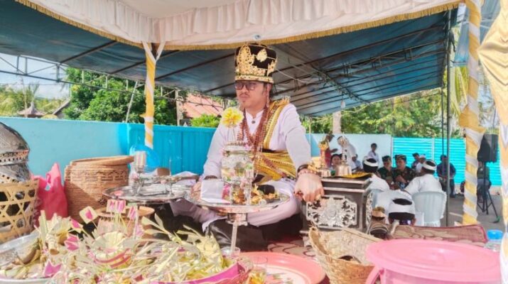 BULELENG – Komandan Koramil (Danramil) 1609-08/Gerokgak, Kapten Inf I Made Sudiarcana, menghadiri undangan upacara adat religi Melaspas dan Pecaruan atas selesainya pembangunan fasilitas Dapur