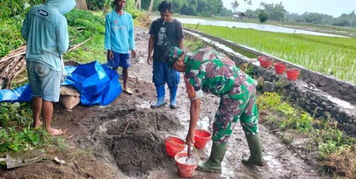 Hu’u, NTB — Babinsa Koramil 1614-03/Hu’u Kodim 1614/Dompu, Serma Rusli, melaksanakan pendampingan dan pengawasan langsung kegiatan perbaikan saluran irigasi di So Ale 1, wilayah