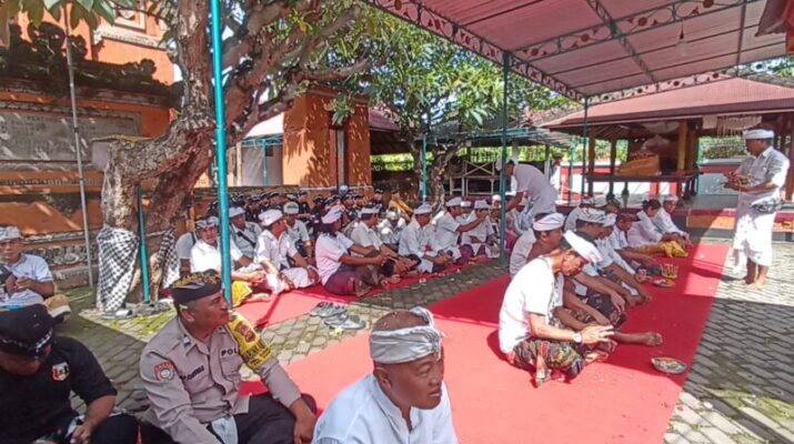 Sukasada, 24 Desember 2025– Babinsa Kelurahan Sukasada Koramil 1609-05/Sukasada Kodim 1609/Buleleng, Sertu Nyoman Join, menghadiri kegiatan Persembahyangan Bersama yang dilaksanakan di Pura Desa Adat