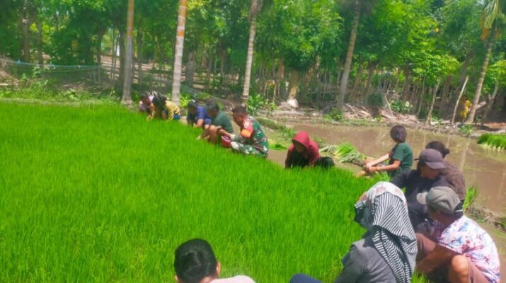Kebersamaan Babinsa dan Petani Warnai Kegiatan Tanam Padi di Karera