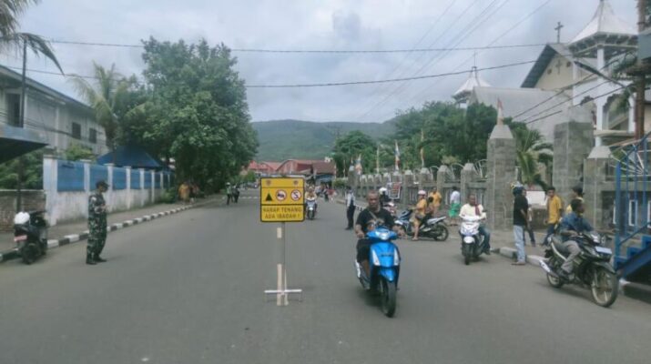 NTT—ALOR—, Babinsa Desa Alila, Serka Suandi Mohala, melaksanakan monitoring dan pengamanan ibadah Misa Tahun Baru 2026 pada Rabu, 1 Januari 2026, pukul 08.00 WITA.