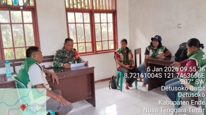 Detusoko,Ende – Babinsa Koramil 1602-03/Detusoko, Serka Wagimin, melaksanakan kegiatan Monitoring Wilayah, Komunikasi Sosial (Komsos), dan Pengawasan Wilayah (Pamwil) di Kantor BPP Kecamatan Detusoko. Kegiatan