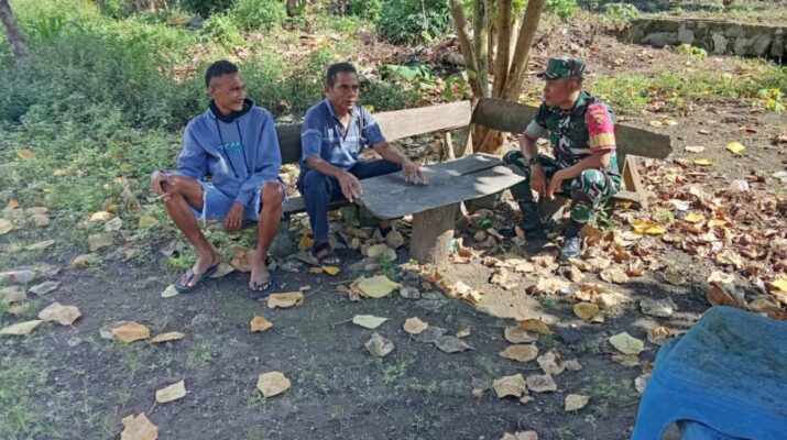 Ende, – Dalam upaya menjaga keamanan, ketertiban, dan kedekatan dengan masyarakat, Babinsa Koramil 1602-02/Wolowaru, Sertu Arnoldus Seba, melaksanakan kegiatan Komunikasi Sosial (Komsos) dan Pengawasan