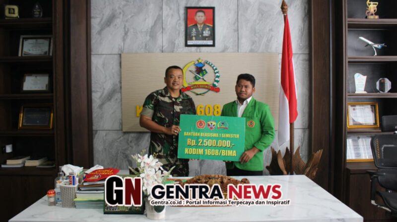 Bima _ Pada hari Senin, tanggal 19 Januari 2025, bertempat di Ruang Kerja Dandim 1608/Bima, Jalan Sukarno Hatta Kelurahan Sadia Kecamatan Mpunda Kota Bima, telah berlangsung kegiatan pemberian beasiswa untuk satu semester dari Dandim 1608/Bima, Letkol Arh Samuel Asdianto Limbongan S.kom M.Sc, kepada Saudara Idham, mahasiswa Muhammadiyah Bima yang berhasil menjawab pertanyaan Dandim dalam dialog kebangsaan Wahda Islamiyah.