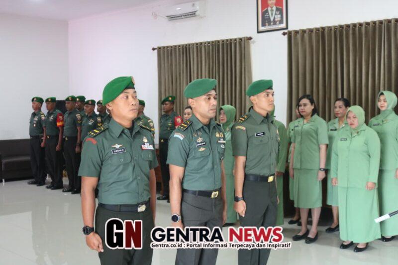 NTT-KUPANG, – Kodim 1604/Kupang menggelar upacara Laporan Korp Pindah Satuan bagi tiga perwira terbaiknya di Aula Kodim 1604/Kupang, Jalan Moh. Hatta, Kelurahan Fontein, Kecamatan Kotaraja, Kota Kupang. Kegiatan yang berlangsung penuh khidmat ini dipimpin langsung oleh Dandim 1604/Kupang Kolonel Inf Kadek Abriawan, S.I.P., M.H.I., dengan Pimpinan Tertua Pasi Ter Kodim 1604/Kupang Kapten Inf. Sudirman serta Perwira Acara Kapten Inf. Irwan. Acara tersebut diikuti oleh kurang lebih 90 orang peserta yang terdiri atas personel militer, PNS, dan Ibu-ibu Persit Kartika Chandra Kirana Cabang XV Kodim 1604/Kupang. Senin (19/01/2026).